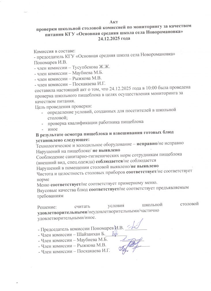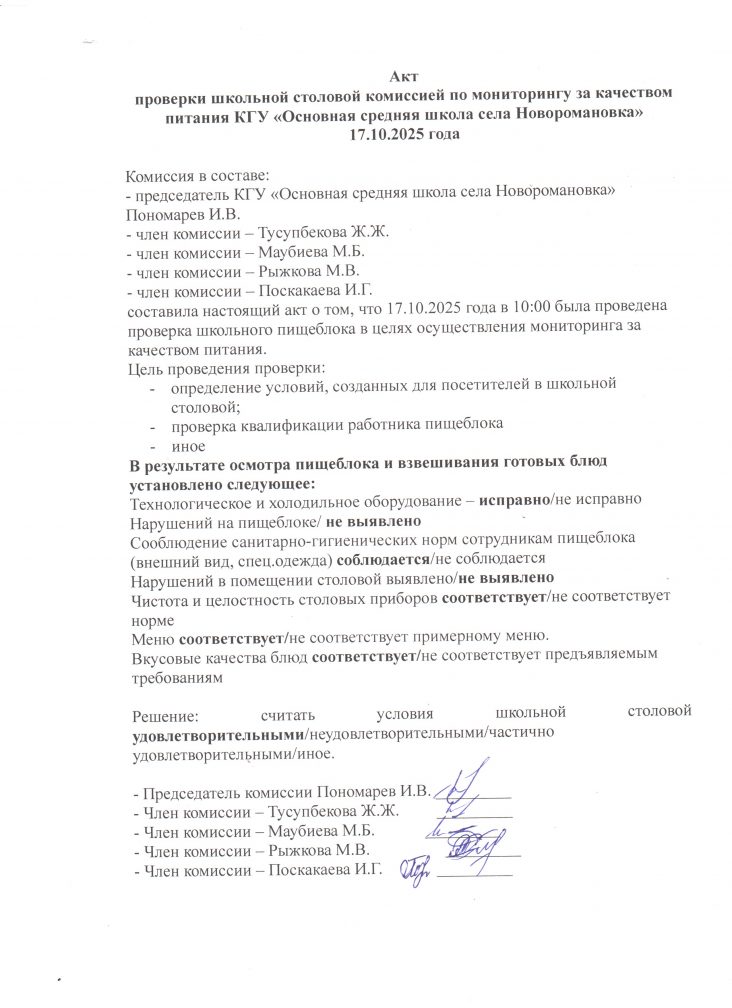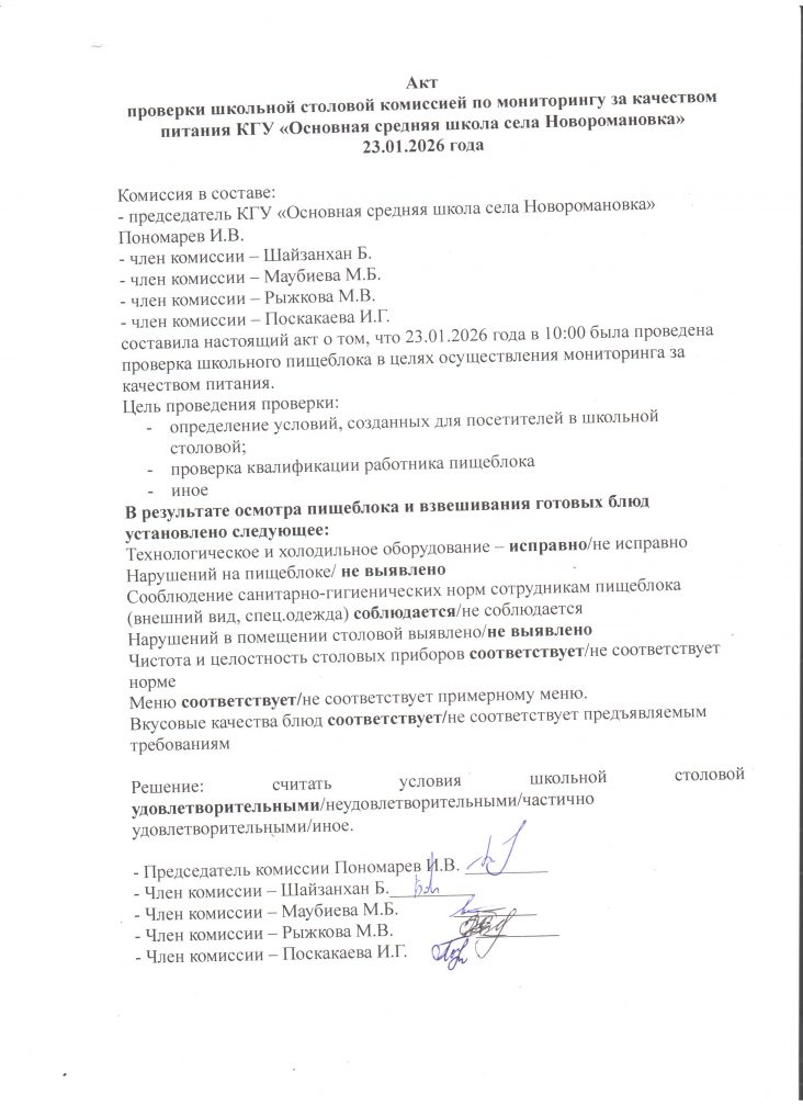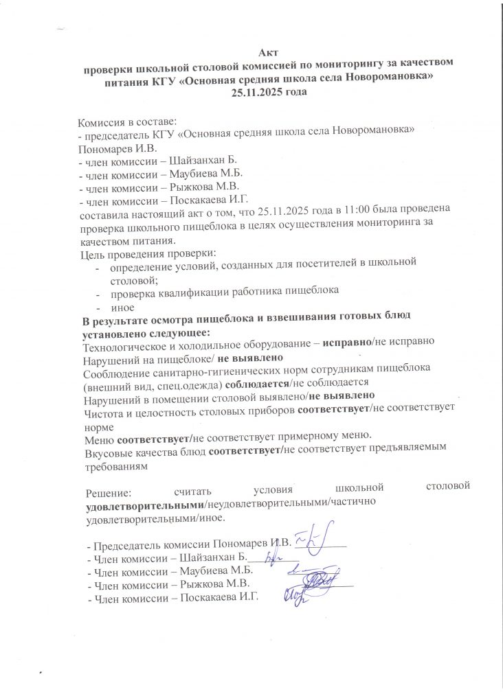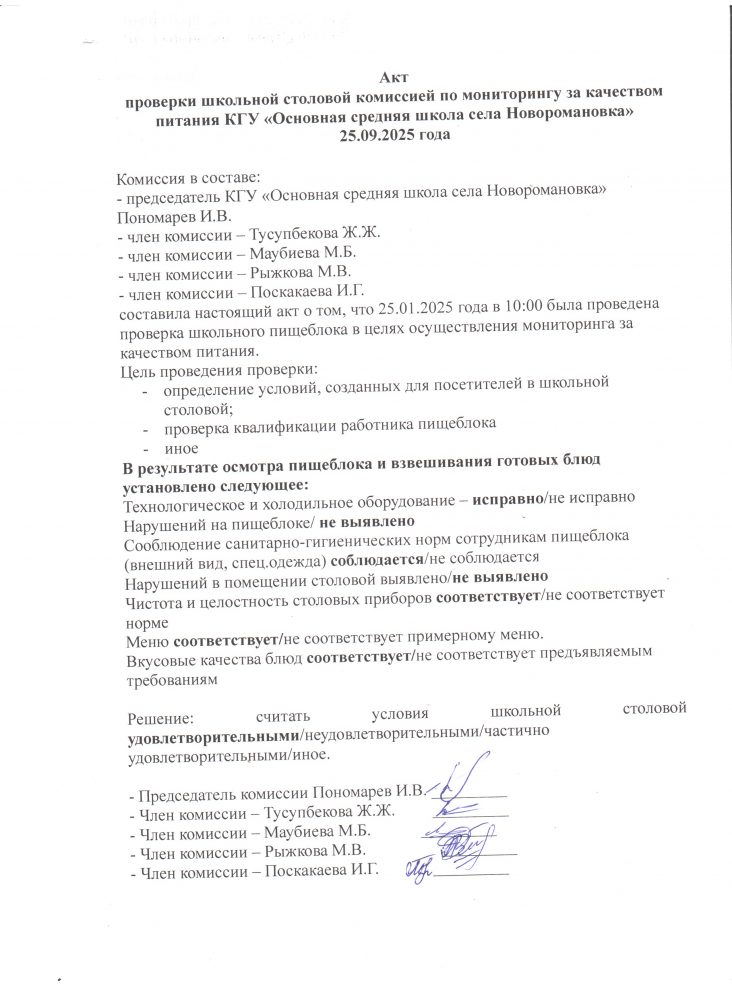 Коммунальное государственное учреждение «Основная средняя школа села Новоромановка отдела образования по Сандыктаускому району управления образования Акмолинской области»